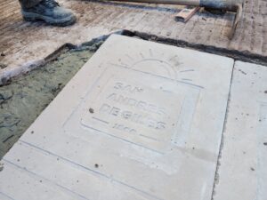 Una vez fraguado el cemento, se pintan de amarillo para su correcta visualización.