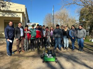 Primero visitó el CEPT N° 2, donde hizo entrega de una cortadora de césped a la tesorera de la cooperadora, Andrea Valgetic y la vicedirectora Verónica Jara.